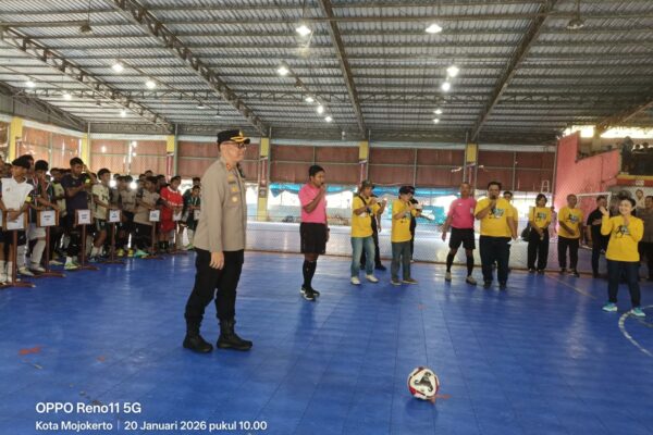 Kapolres Mojokerto Kota Buka Piala PWI Mojokerto Cup 2026 dengan Tendangan Perdana