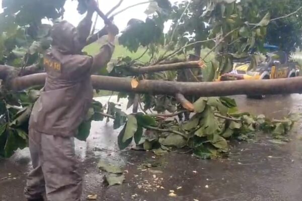 Mojokerto,Kertonews.com- Hujan deras disertai angin kencang yang mengguyur wilayah Kecamatan Jatirejo, Kabupaten Mojokerto, Rabu (28/1/2026) siang, menyebabkan satu batang pohon jati tumbang dan menutup total badan jalan penghubung Desa Jatirejo menuju Desa Lebakjabung. Peristiwa tersebut terjadi sekitar pukul 13.15 WIB di wilayah Desa Lebakjabung. Pohon jati dengan diameter kurang lebih 15 sentimeter tumbang akibat tingginya…