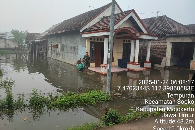 Mojokerto,kertonews.com- Banjir masih merendam Desa Tempuran, Kecamatan Sooko, Kabupaten Mojokerto. Namun trend banjir akibat debit air Sungai Avour Jombok meningkat karena hujan yang menguyur Mojokerto dan Jombang ini perlahan mulai turun perlahan.