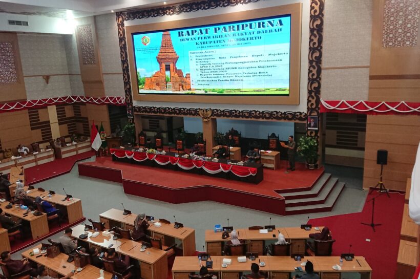 Mojokerto,Kertonews.com – Setelah dilakukan pembahasan secara mendalam oleh semua Komisi beserta alat kelengkapan dewan lainya. DPRD Kabupaten Mojokerto akhirnya menggelar rapat paripurna dengan agenda penyampaian nota penjelasan tiga Rancangan Peraturan Daerah (Raperda), Senin, 26 Mei 2025.