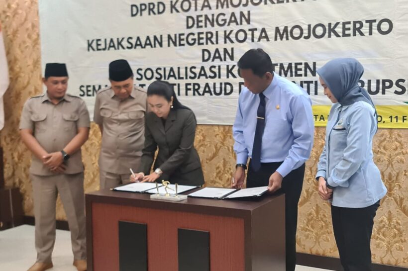 Mojokerto,Kertonews.com-Guna menghindari persoalan hukum di wilayah kota Mojokerto, DPRD Kota Mojokerto dan Kejaksaan Negeri (Kejari) Kota Mojokerto secara resmi menandatangani Nota Kesepahaman (MoU) di Aula Kantor Kejari Kota Mojokerto, Selasa (11/2/2025).Hal ini dibuat sebagai bentuk komitmen bersama dalam memperkuat sinergi, khususnya dalam aspek persoalan hukum jangan sampai terjadi di Kota Mojokerto.