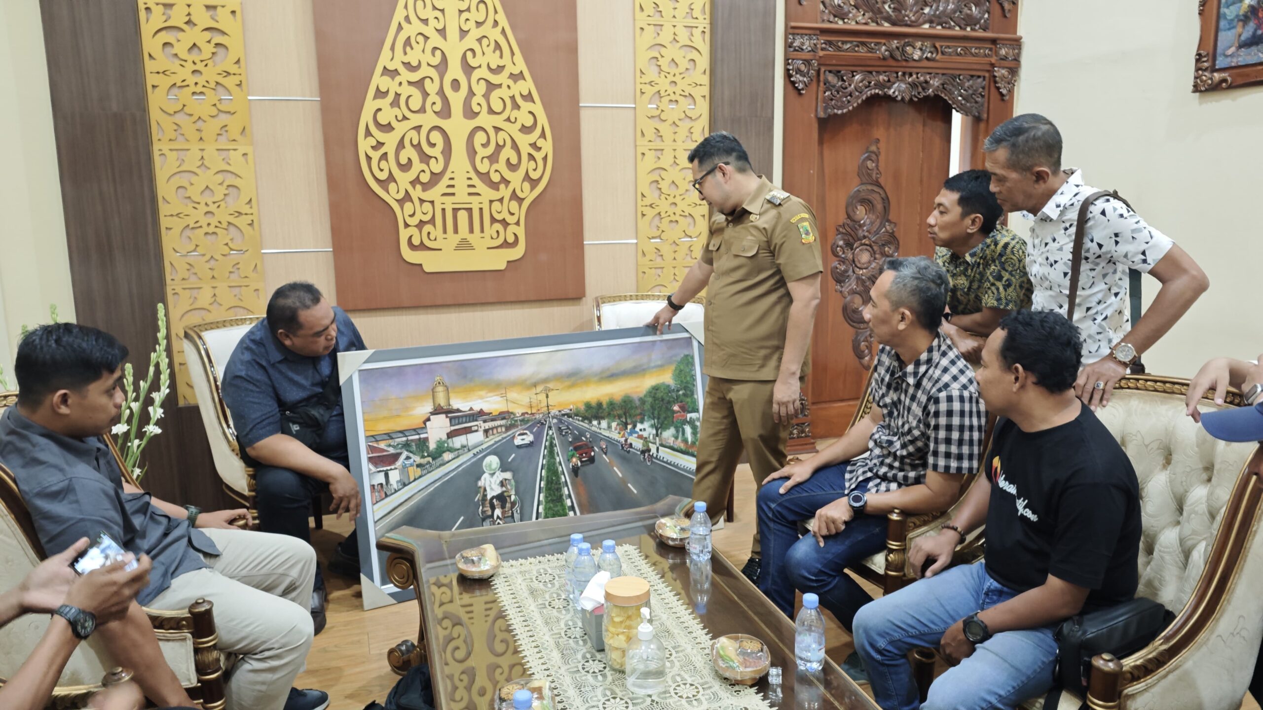 Mojokerto,Kertonews.com-. Dua hari menjelang berakhirnya masa tugasnya di Kota Mojokerto, Ali Kuncoro Pj Walikota Mojokerto dapat kenang kenangan khusus berupa lukisan jalan empunala. Yang merupakan hasil goresan tangan Diak Eko Purwoto wartawan SCTV dan Indosiar.
