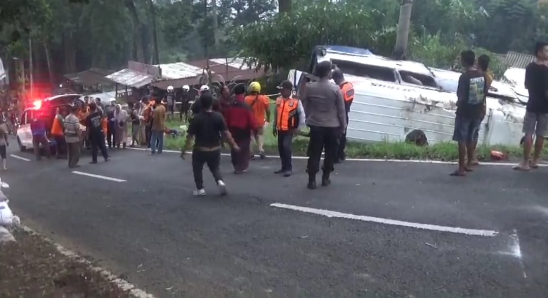 Akibat kecelakaan tersebut, mobil Elf berada dalam kondisi terbalik di badan jalan. Sejumlah penumpang dilaporkan mengalami luka ringan hingga luka berat, termasuk beberapa anak-anak yang sempat tidak sadarkan diri.