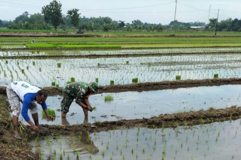 Mojokerto,Kertonews.com – Babinsa Koramil 0815/02 Trowulan Kodim 0815/Mojokerto Serka Irfan Novanto melaksanakan kegiatan pendampingan penanaman padi di lahan seluas 2 hektar milik Ibu Kosiah Dusun Unggahan, Desa Trowulan, Kecamatan Trowulan Kabupaten Mojokerto, Jawa Timur, Jumat (07/08/2025).